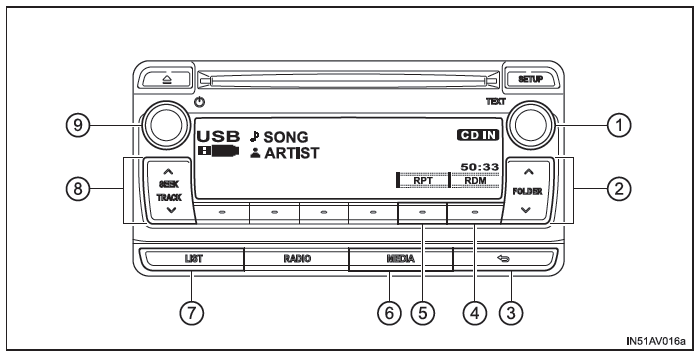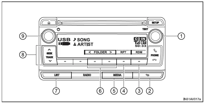 Toyota Avensis / Audiosystem / Verwenden von externen Geräten. Wiedergabe von einem USB-Speichergerät / Bedienelemente